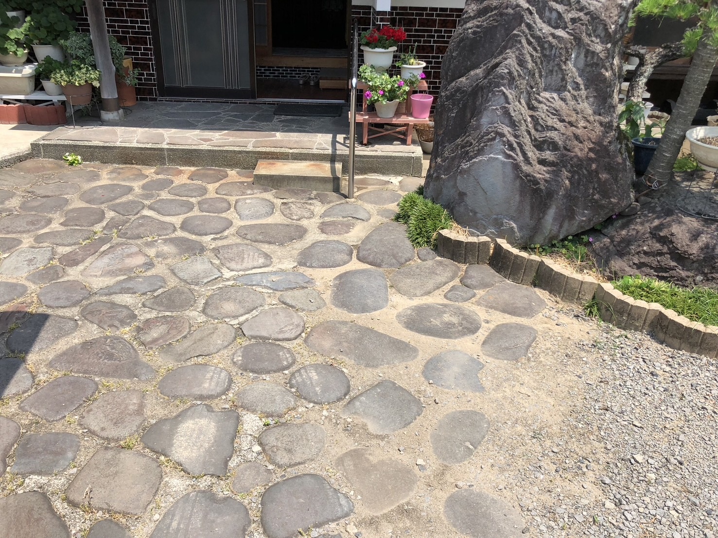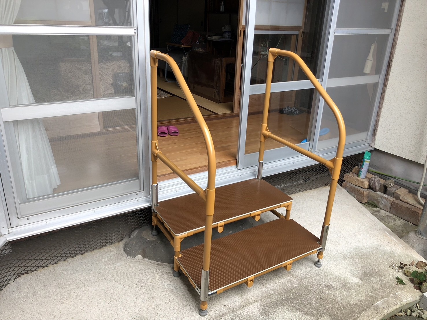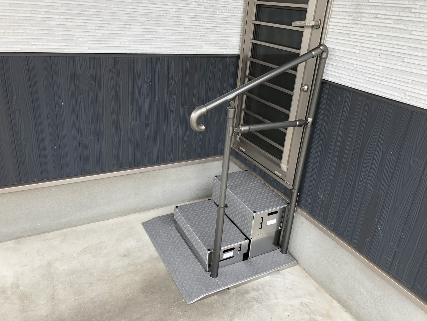 縁側からの段差昇降、出入りの手すりを設置しました。